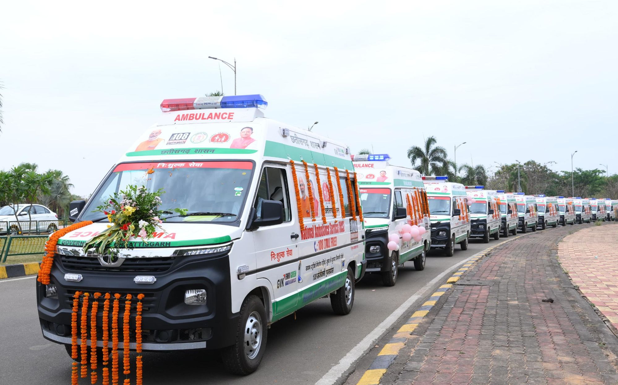 रायपुर 31 मार्च 2026/प्रदेश में आपातकालीन स्वास्थ्य सेवाओं को और अधिक सुदृढ़ और प्रभावी बनाने की दिशा में आज एक ऐतिहासिक पहल की गई। मुख्यमंत्री विष्णुदेव साय ने 300 बेसिक लाइफ सपोर्ट (BLS) एवं 70 एडवांस्ड लाइफ सपोर्ट (ALS) एम्बुलेंसों को हरी झंडी दिखाकर प्रदेश के सभी जिलों के लिए रवाना किया। इसके साथ ही 108 एम्बुलेंस की समस्त सेवाएं प्रदेशभर में तत्काल प्रभाव से प्रारंभ हो गई हैं, जिससे आपातकालीन परिस्थितियों में नागरिकों को त्वरित एवं गुणवत्तापूर्ण चिकित्सा सहायता सुनिश्चित होगी।