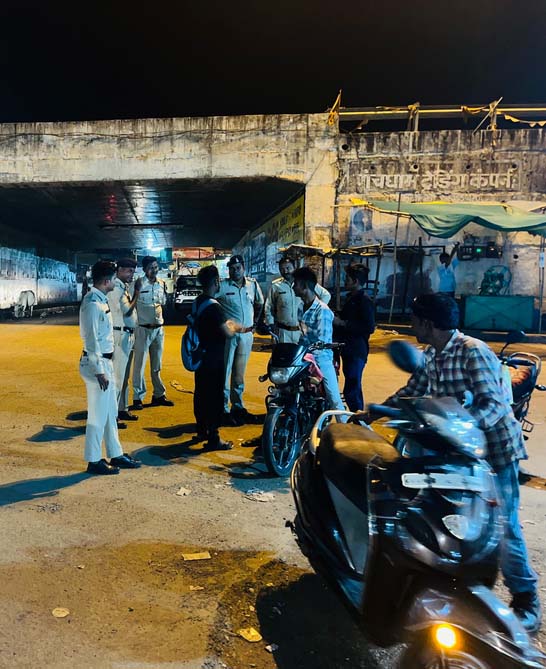 राजनांदगांव, 26 मई। विजुअल पुलिसिंग के तहत जिलेभर में पुलिस ने फ्लैग मार्च, बाइक पेट्रोलिंग, पैदल पेट्रोलिंग एवं चार पहिया वाहन में पेट्रोलिंग पार्टी शहर के चप्पे-चप्पे पर फ्लैग मार्च किया। राजनांदगांव शहर के अलावा जिले के विभिन्न थाना क्षेत्रों में भी थाना प्रभारियों द्वारा अपने दल-बल के साथ संध्या गश्त की। वहीं संदेहियों से पूछताछ कर असामाजिक तत्वों पर कार्रवाई की जाएगी। आउटर एरिया में भी गश्त पार्टी द्वारा भ्रमण कर असामाजिक तत्वों व नशेडियों को चेक किया गया। जिले के सभी शहरी थाना क्षेत्र में 150 से अधिक जवानों द्वारा फ्लैग मार्च किया गया।